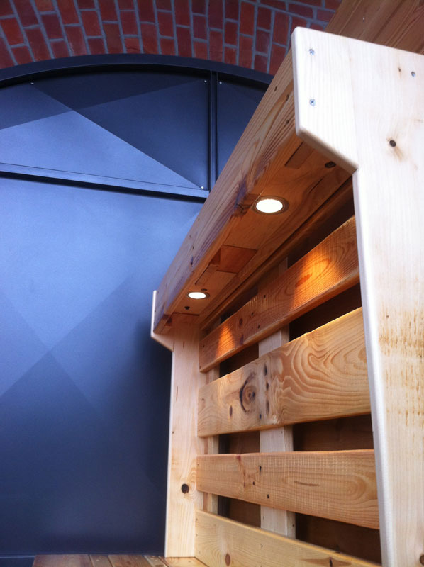 Sideboard, gefertigt aus Europaletten mit integrierten Schubladen und Beleuchtung.