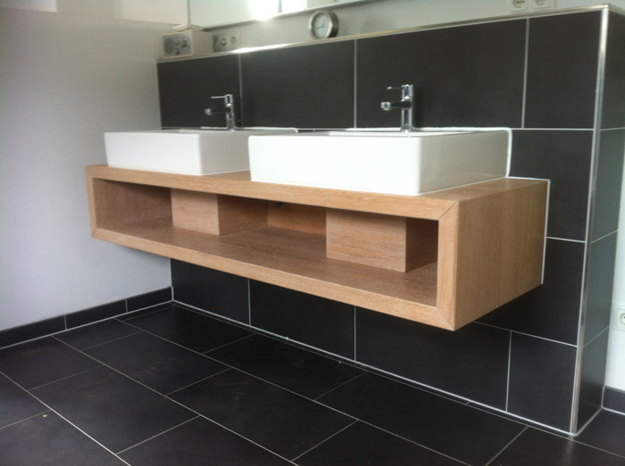 Offener Waschtischunterbau unter vorhanden Waschbecken.